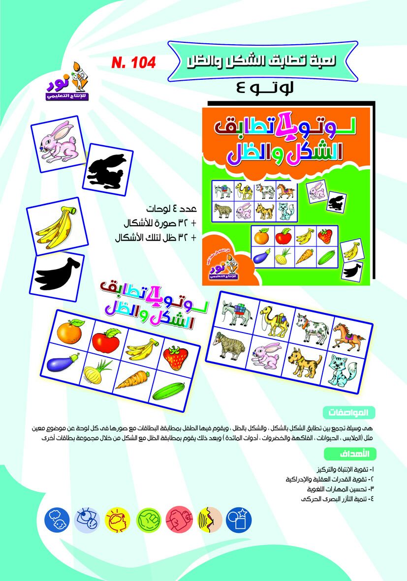 تساعد الطفل تعلم التطابق وتعميمه وتطابق الشكل والظل بالإضافة إلى زيادة الحصيلة اللغوية وتطوير النطق والكلام