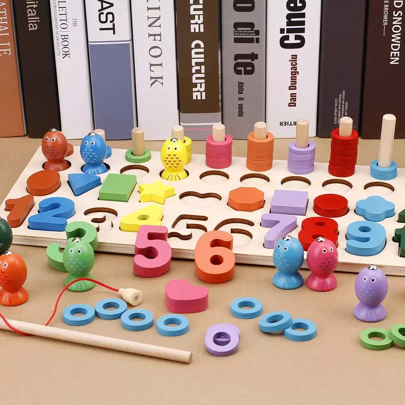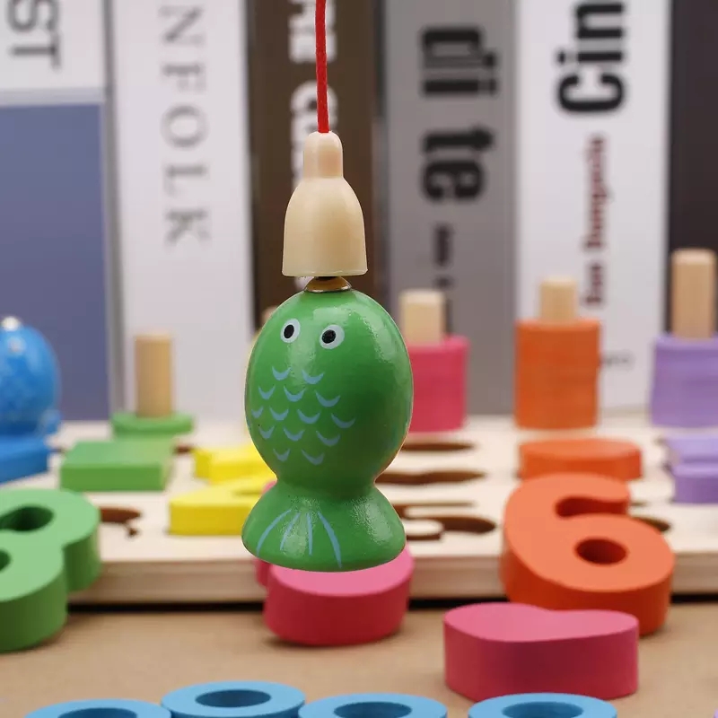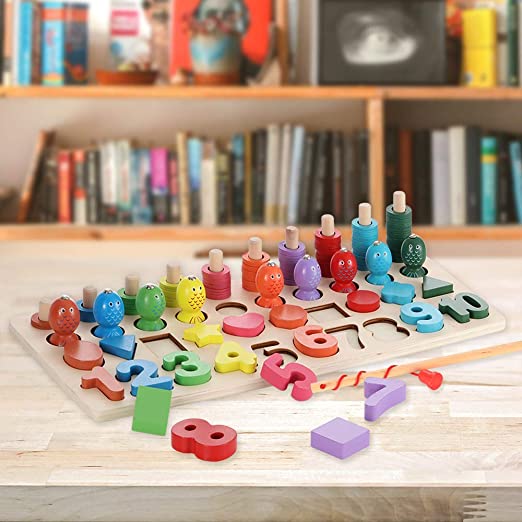 لعبة تربوية خشبية لتعليم الطفل الأرقام والأشكال والألوان وتقوية التركيز والإنتباه والتنسيق الحركي من خلال صيد السمك المغناطيسي