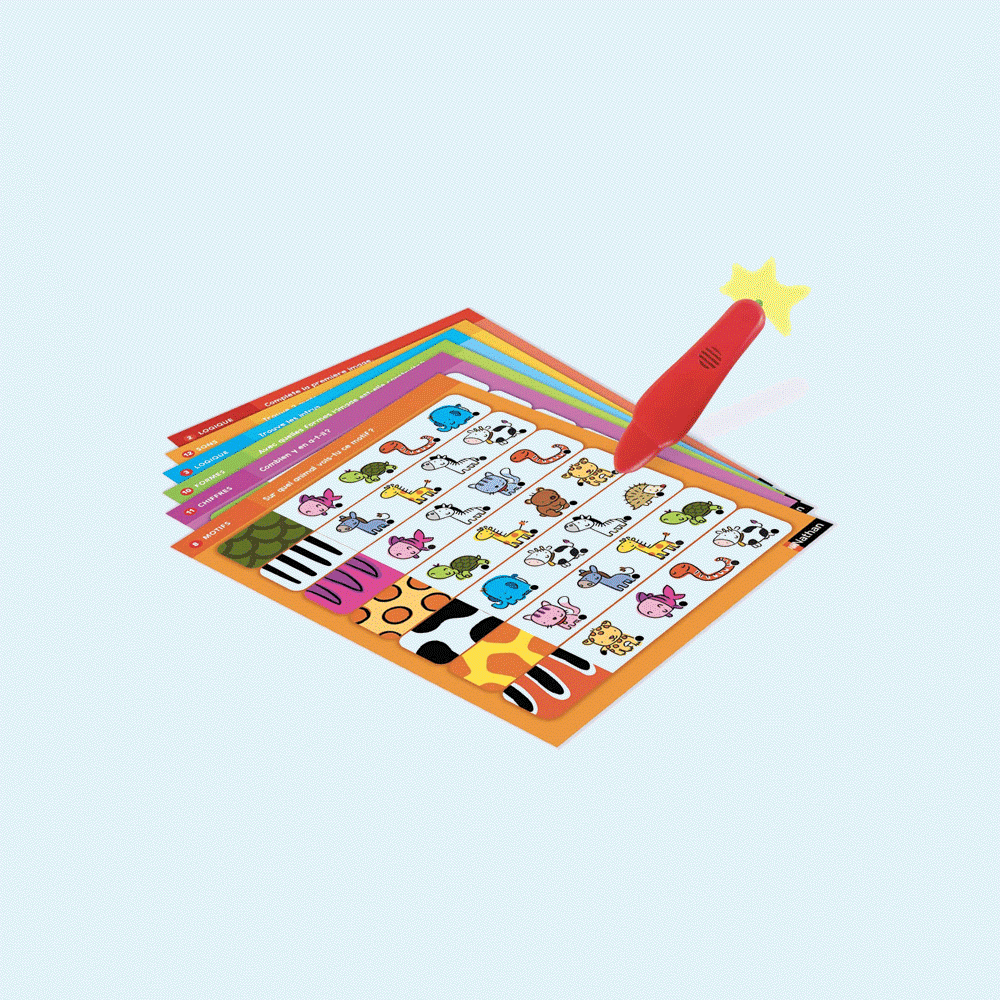 Contenu: 12 planches illustrées, un stylo avec signal sonore et lumineux.