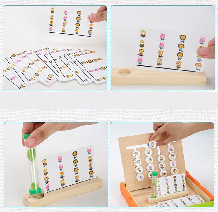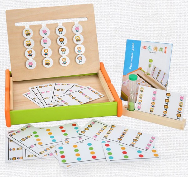 لعبة خشبية مونتيسوري التعليمية بأربعة ألوان مطابقة للحيوانات و الأشكال مع بطاقات عديدة للعب بحرية