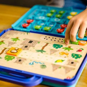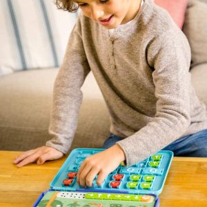 - Un système auto correctif qui permet à l’enfant de jouer en toute autonomie sans électronique ni écran suivant les techniques utilisées à l’école. Il apprend à décomposer une séquence en plusieurs actions pas à pas