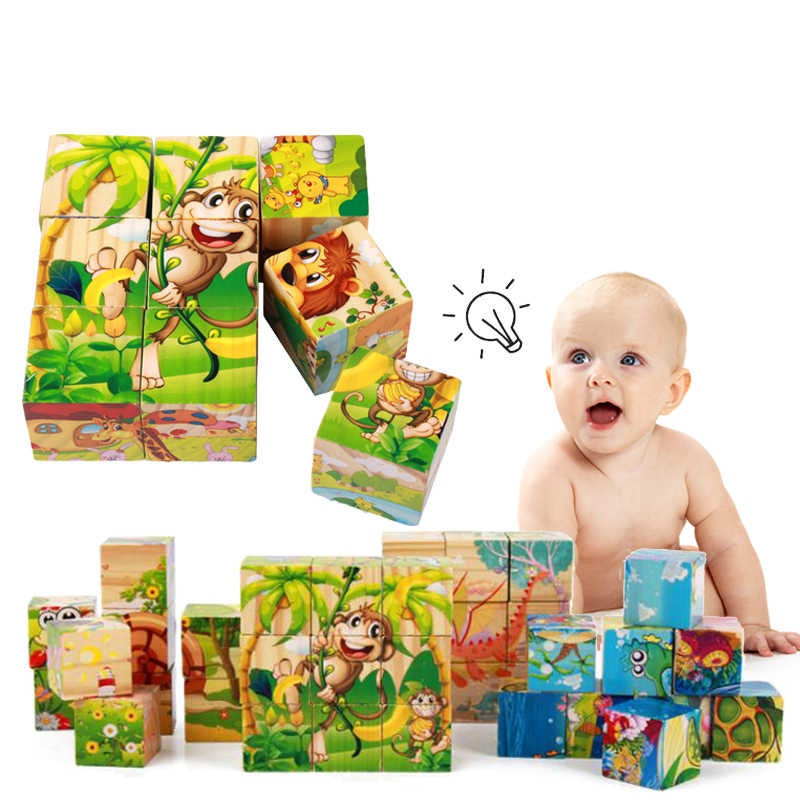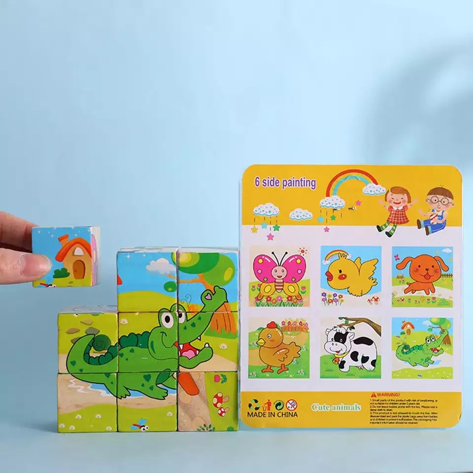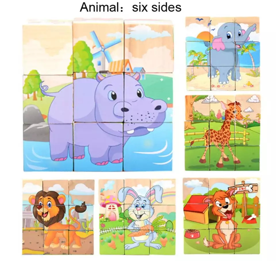 يتكون هدا البازل من أربع جهات يجب على الطفل تكون الصورة المختارة من الصور من القطع المشكل لها ببازل واحد فقط يستطيع الطفل تشكيل 6 صور تيجم اللعبة بين التعلم والإبتكار وتنمية المهارات الدهنية لطفل